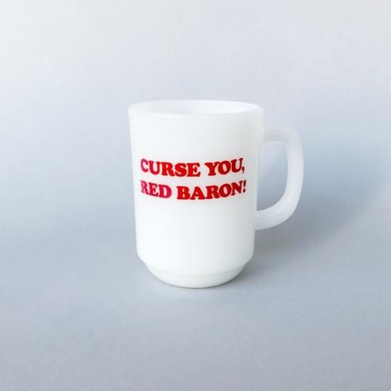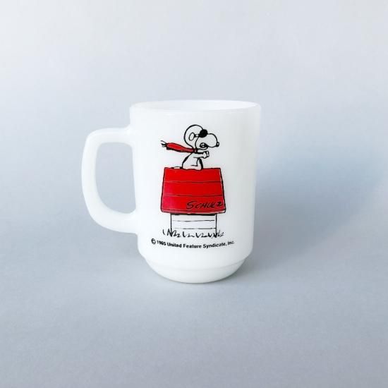 Fire Kingのキャラクターシリーズの中でも人気の高い「スヌーピー」。そのスヌーピーマグの中でも生産数の少なさと高い人気から入手困難とされているのかこの通称「スヌーピー・レッドバロンマグ」です。