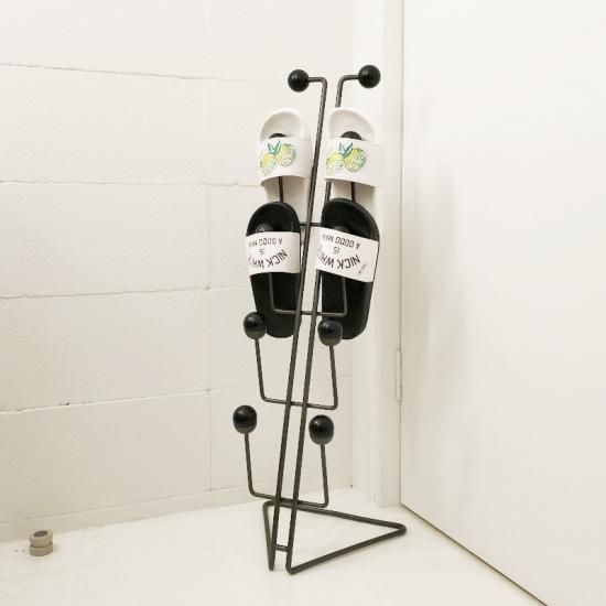 黒鉄色の金属フレームと樹脂製のボールの組み合わせが印象的なスリッパ&シューズラック。