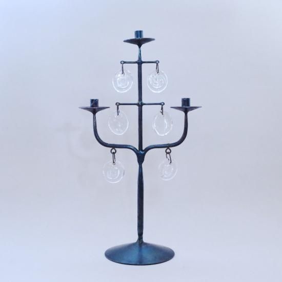 20世紀を代表するスウェーデン出身のデザイナーErik Hoglund(エリック・ホグラン)がデザインをしたキャンドルスタンド。ホグランが長きに渡りデザイナーを務めた、ヨーロッパで最も古い歴史を誇る(1742年創立)ガラスメーカーKOSTA BODA(Boda Smide)社にて製造されたシリーズの1つ。鍛鉄で作られる鉄の質感と透明感のあるガラスのコントラストが特徴です。