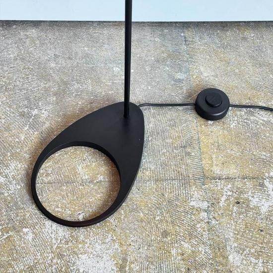 直線的でミニマルな形状のシェードを支える、雫のような丸みのあるベースがアクセントになっています。見た目が重くなりすぎないよう、ベースの中央を空洞にしているところにもヤコブセンの意匠が感じられます。