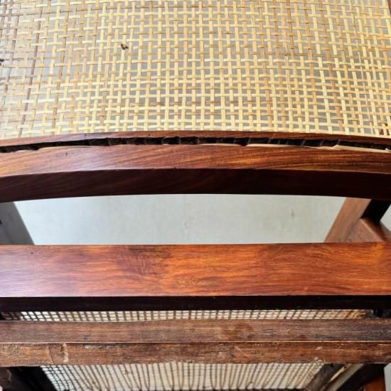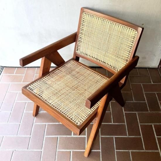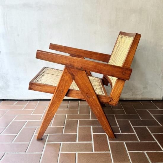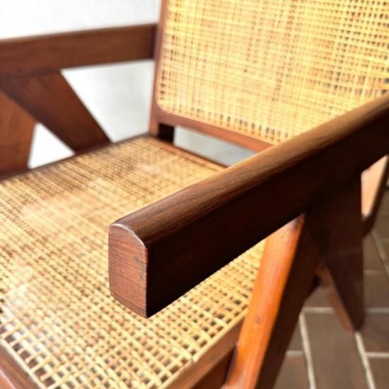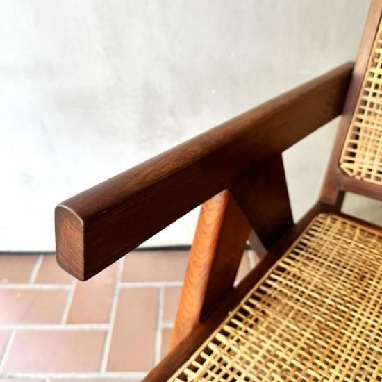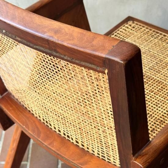 世界中のオークションやヴィンテージ市場での高値の取引や多くのメディアで取り上げられたことで、世界的な評価と知名度を得たジャンヌレを代表する名作です。経年によってエイジングした素材感やこの椅子が誕生した歴史や背景も含め特有の雰囲気を持った1脚です。大きな割れや故障箇所、ラタン部分の破れなども無く綺麗な状態を保っています。