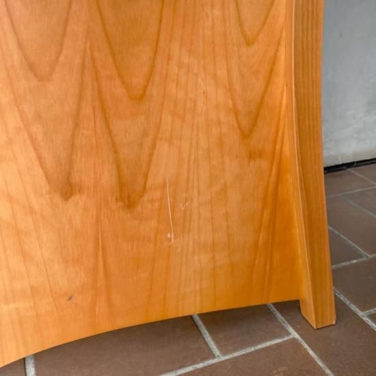 背もたれも高めに設計されているため、しっかりと背中を預けられる安心感のある座り心地です。多少の小傷こそございますが、全体的にとてもきれいな状態を保っています。