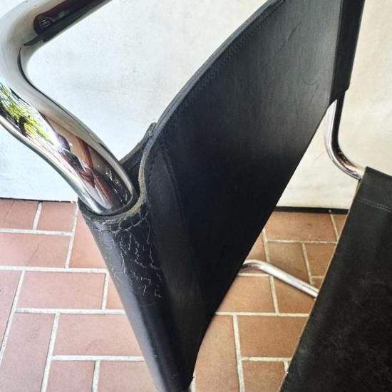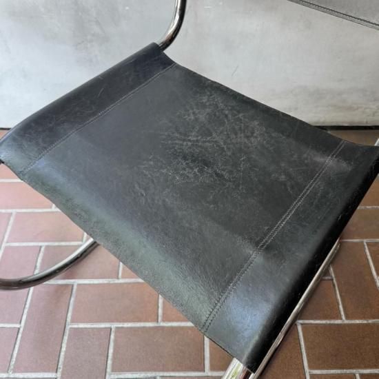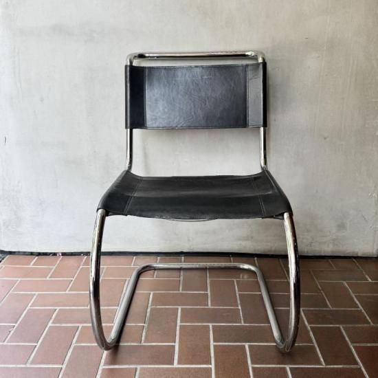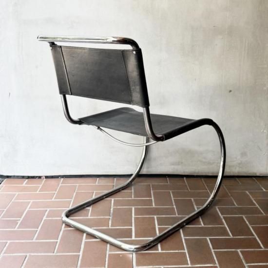20世紀のモダニズム建築を代表するドイツ出身の建築家、ルートヴィヒ・ミース・ファン・デル・ローエによって1927年にデザインされたチェア「S533」。印象的な弓形に大きく曲げられたスチールパイプにリアルレザーがハンモックのように張られたトーネット社製となります。シンプルで機能的な構造に伝統的なデザインを加えることで美的と快適さが両立した20世紀を代表する名作チェアです。