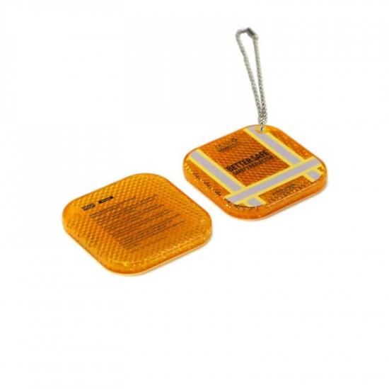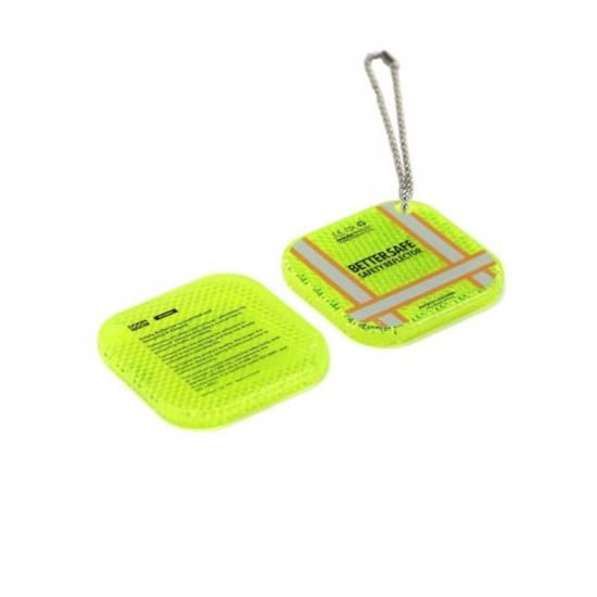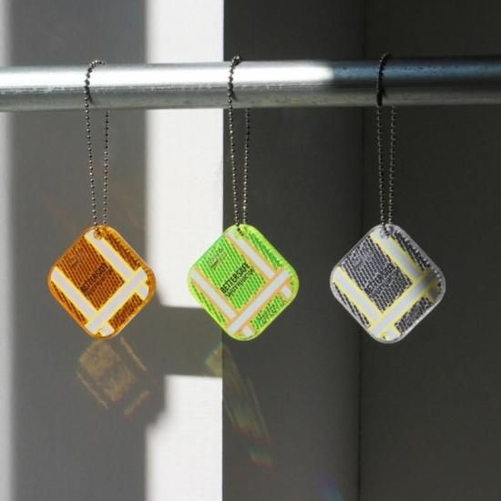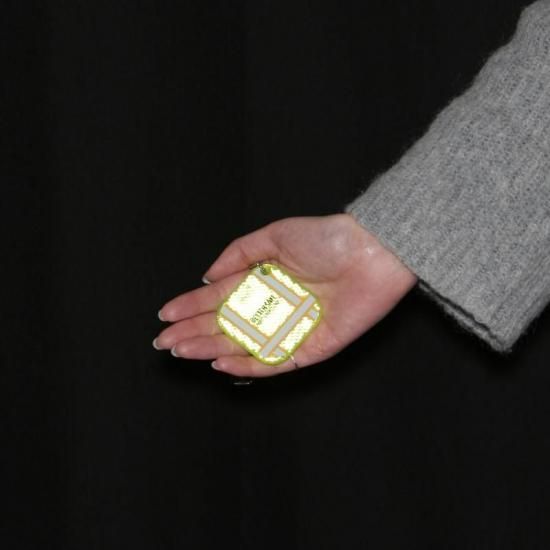 一般的な反射材の2倍の反射性能があり、かつ軽量でリサイクル可能なフィンランド製の素材を使用した高性能リフレクター。デザインはどこかで一度は見たことがある、あのベストがモチーフになっています。