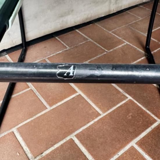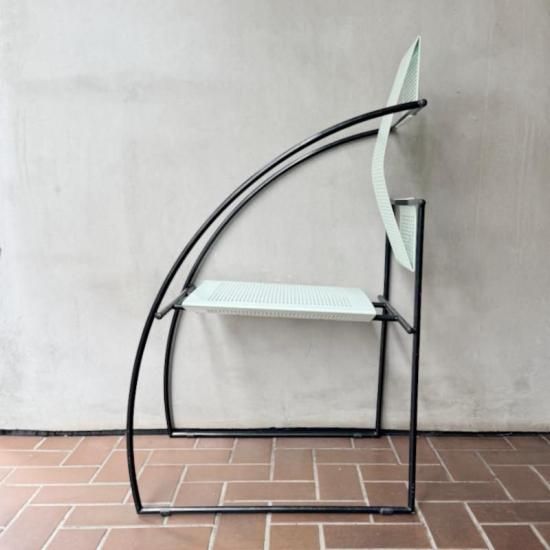 製造は、ジャンドメニコ・ベロッティの「スパゲッティチェア」や、ボッタの「セコンダ」を手掛けたイタリアの前衛的家具メーカー Alias(アリアス)社。弧を描くアームが印象的なブラックフレームに、希少な ペパーミントグリーンのパンチングメタルシート が組み合わされたスタイリッシュな一脚です。