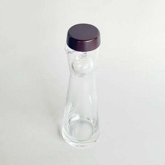 老舗ガラスメーカーの保谷クリスタル硝子製造所(現在HOYA)のプロダクトデザイナーとして活躍した佐々文夫によって1960年にデザインされたデッドストックのヴィネガーボトル。