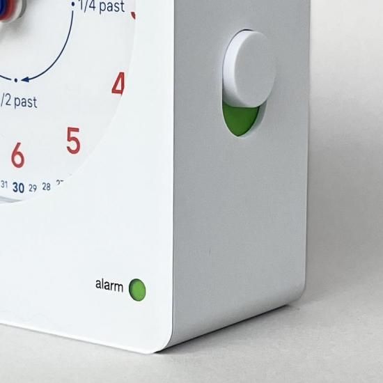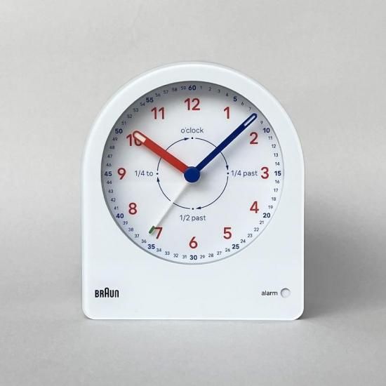 楽しく時間の数え方や読み方を学べるようにデザインされた"Time Teacher"シリーズは子供から大人までが親しみやすい洗練されたデザインとなっており、勉強の教材としてもインテリアとしても活躍してくれそうです。オレンジの文字にブルーの秒針のコントラストが目を引きます。