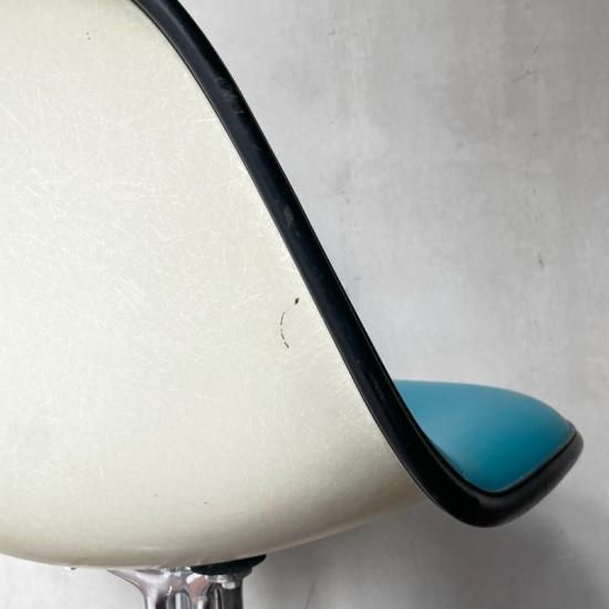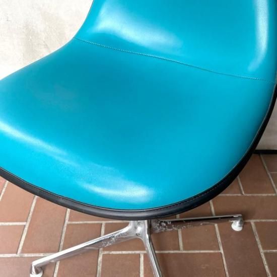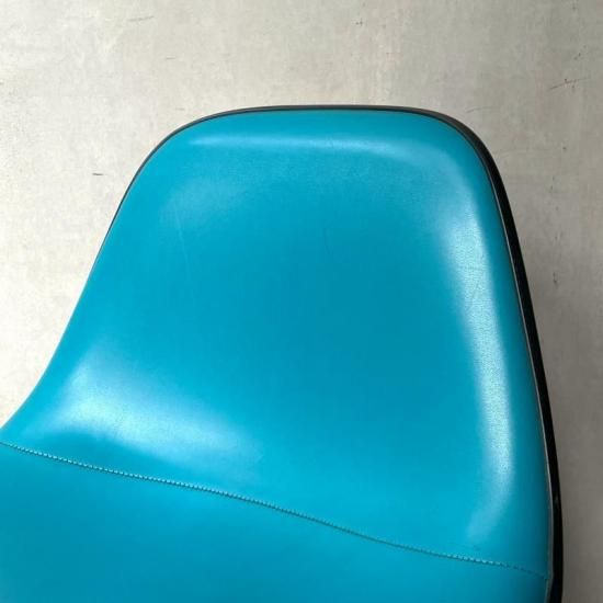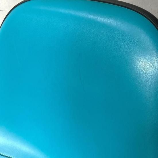 こちらは発色の良いターコイズのナウガハイドレザーが張られた、1960〜70年代製のヴィンテージです。座面やモール(エッジのパイピング)も使用による小傷はあるものの、全体的には大きなダメージも見られません。
