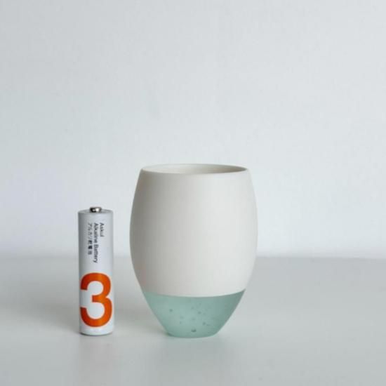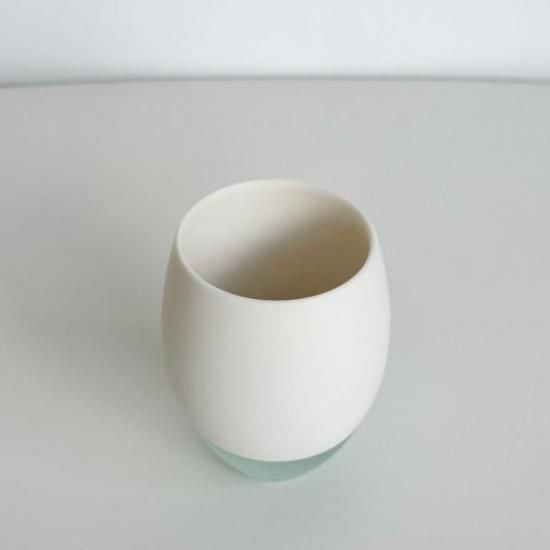 透明感のあるクリーム色の磁器と、やわらかな印象のガラスを組み合わせた、彼女を代表するシリーズです。