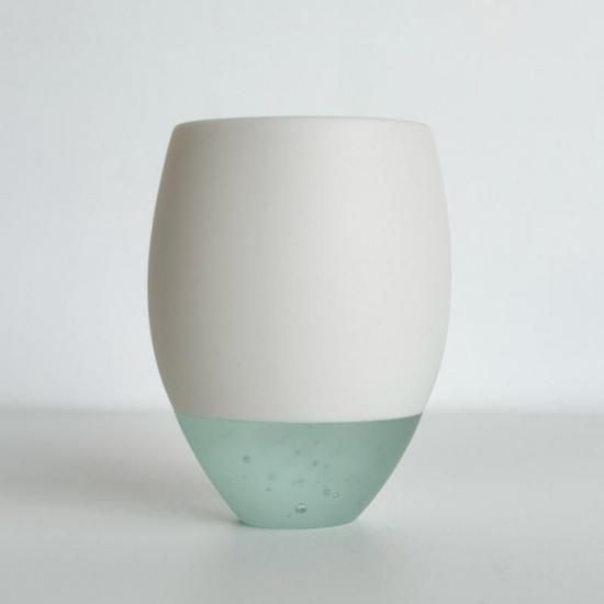 This signature series combines translucent cream-colored porcelain with softly textured glass.