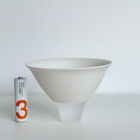 透明感のあるクリーム色の磁器と、やわらかな印象のガラスを組み合わせた、彼女を代表するシリーズです。