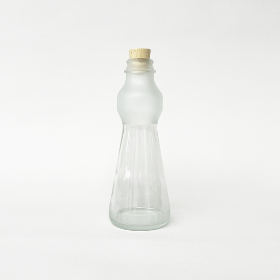 一度役目を終えた容器をただリユースするのではなく、ラベルの痕跡をデザインとして落とし込み、それが容器の表情となり個性としてもう一度生活の道具として生まれ変わらせている。