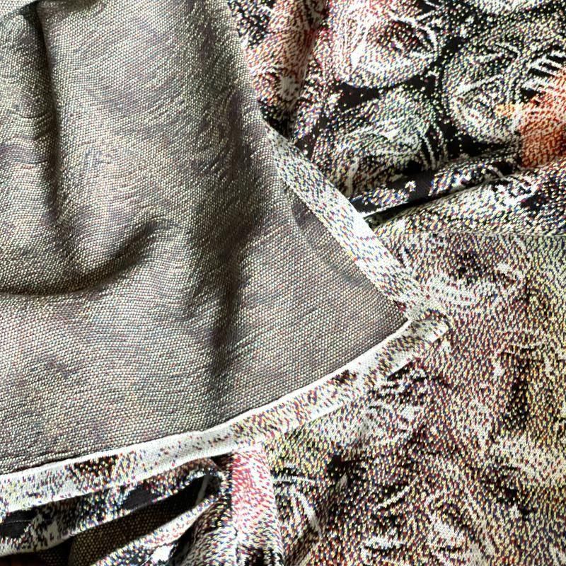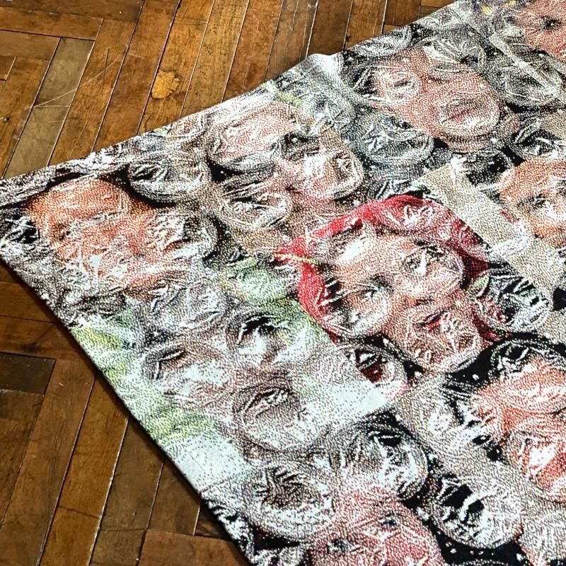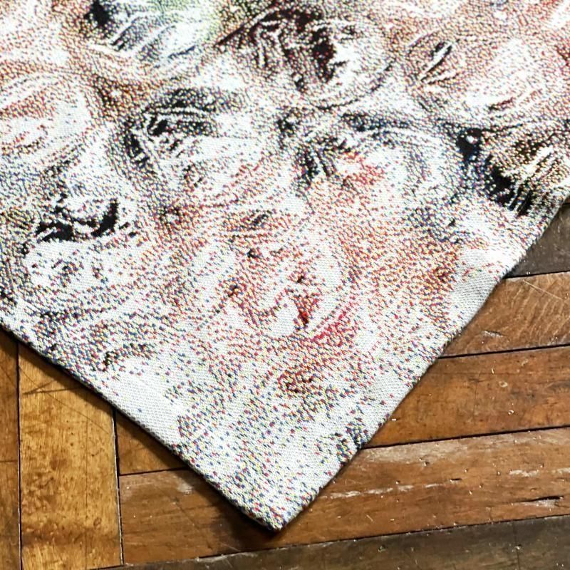 手に取って近くで見ると絵柄は認識できないのですが、距離を取るにつれて写真のようにはっきりと目に見えるようになるユニークな作り。ソファやベッドにすこし雑に掛かっているのも良さそうですし、そのまま壁に飾ってみるのもお勧めです。