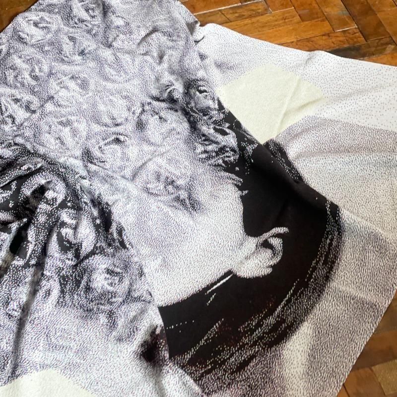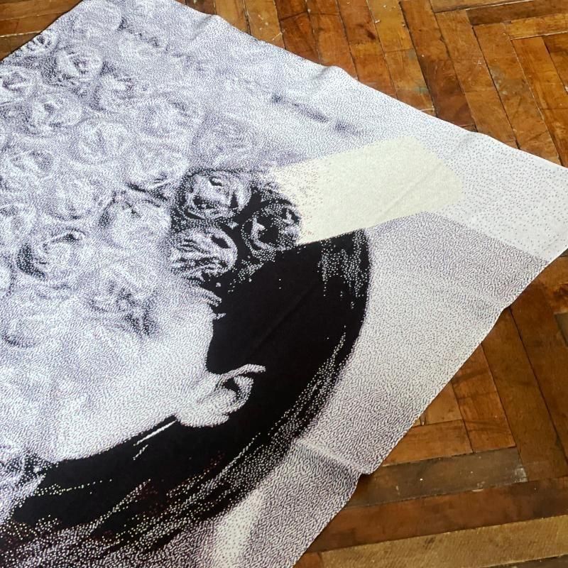 手に取って近くで見ると絵柄は認識できないのですが、距離を取るにつれて写真のようにはっきりと目に見えるようになるユニークな作り。ソファやベッドにすこし雑に掛かっているのも良さそうですし、そのまま壁に飾ってみるのもお勧めです。