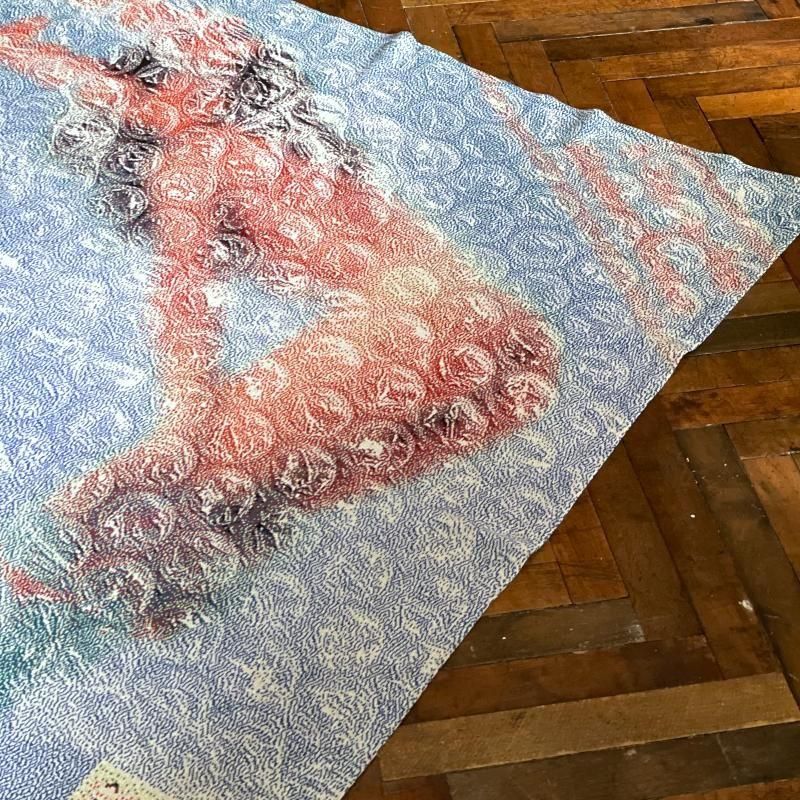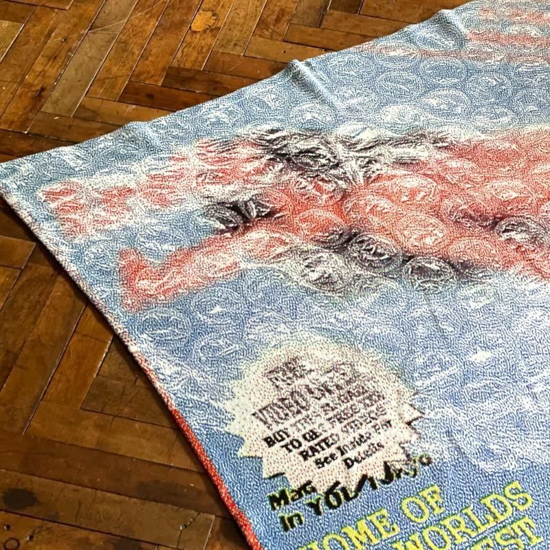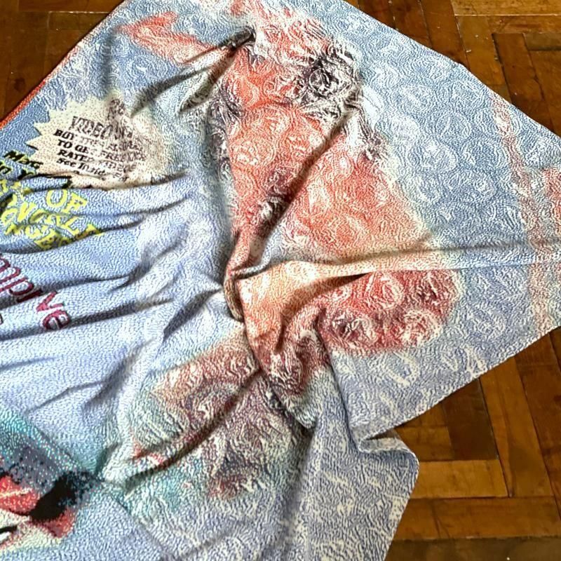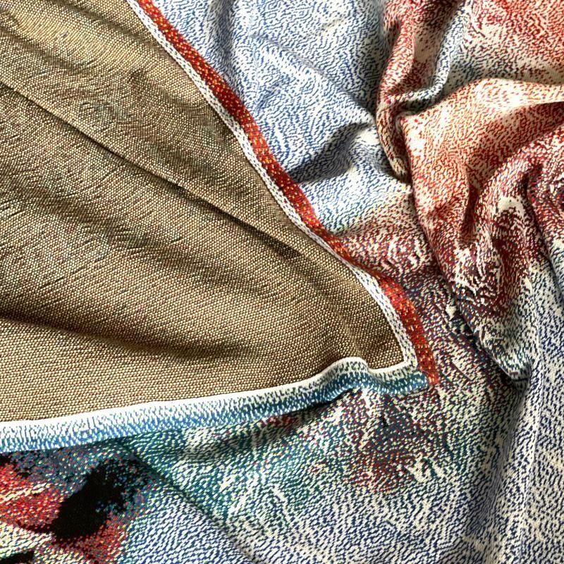 手に取って近くで見ると絵柄は認識できないのですが、距離を取るにつれて写真のようにはっきりと目に見えるようになるユニークな作り。ソファやベッドにすこし雑に掛かっているのも良さそうですし、そのまま壁に飾ってみるのもお勧めです。