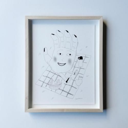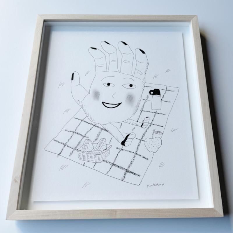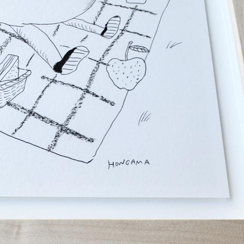 NICK WHITE にて開催されたHONGAMA SOLO EXHIBITION「バッド・ドリームス」 のために制作された、モノクロドローイング作品。本作は額装済みで、作品としてすぐに飾っていただける仕様となっています。