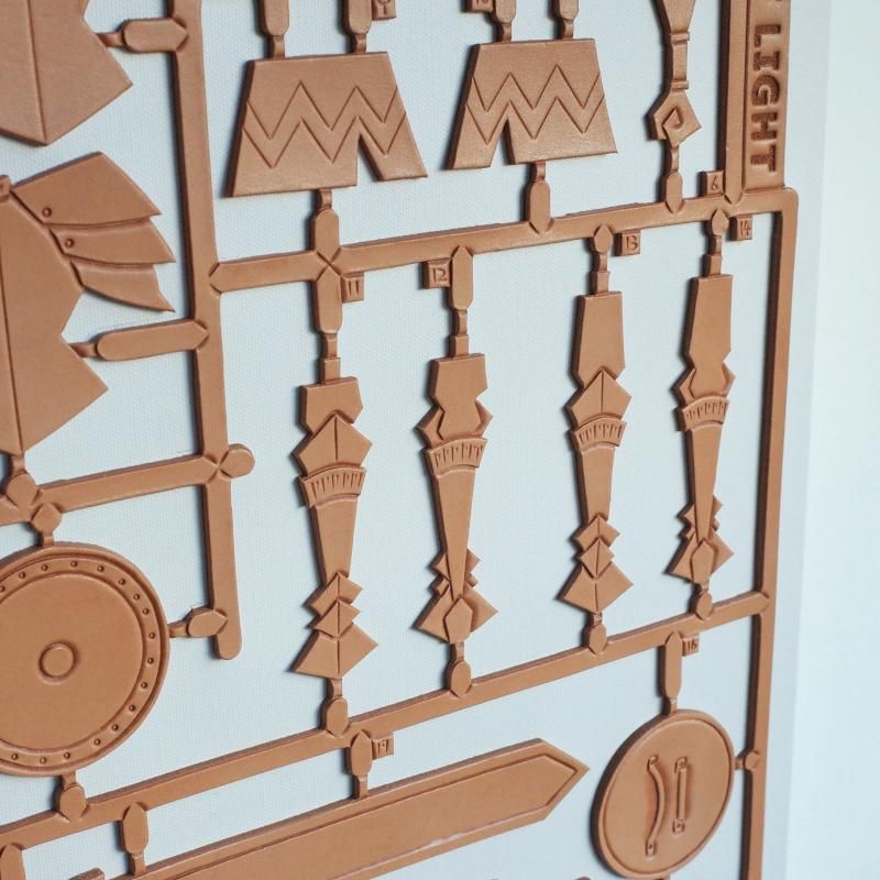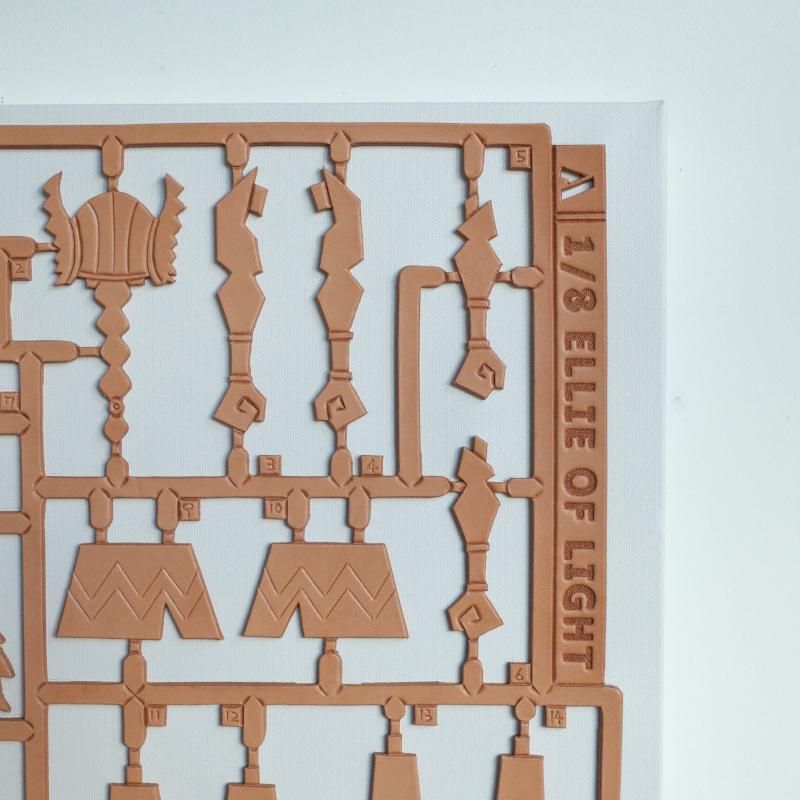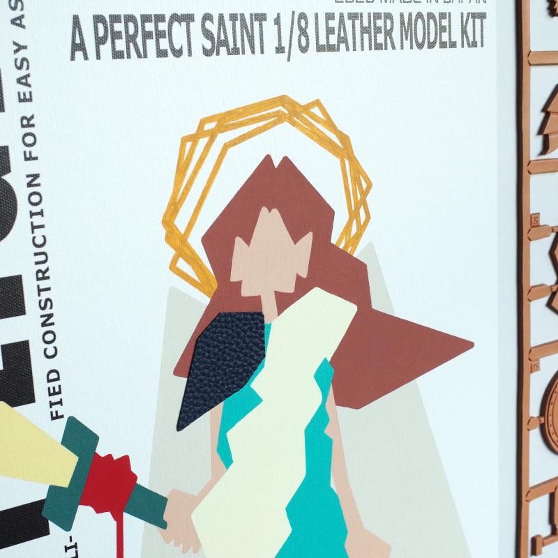 Material : Acrylic and UVprint on canvas,Carving on camel leather