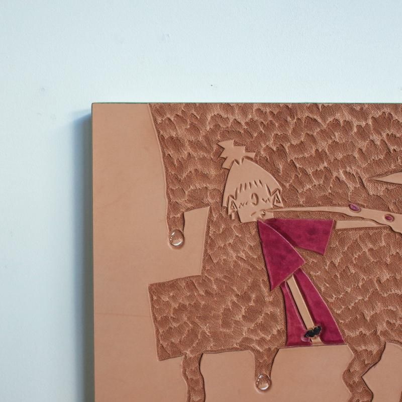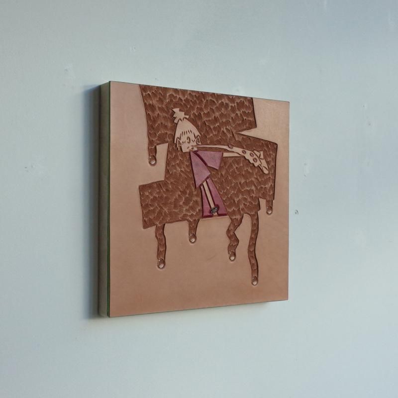Material : Acrylic and UVprint on canvas,Carving on camel leather
