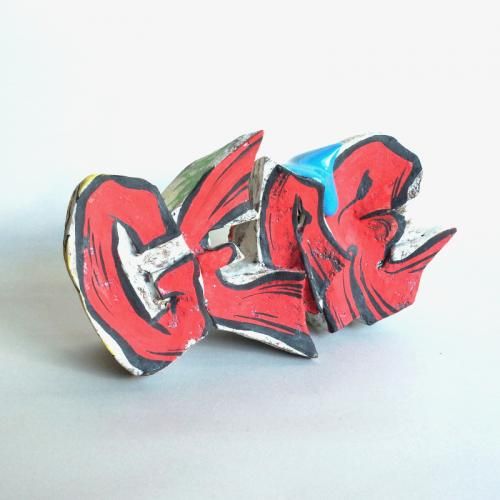 グラフィティやダンスなどのストリートカルチャーから受けた影響やインスピレーションを、太古の昔から存在する陶という素材で表現した彼を代表する作品「GEAR」。伝統的である陶の技法から解き放たれた彼独自のカルチャーを生み出しています。既成概念に捉われない想いの詰まった作品です。