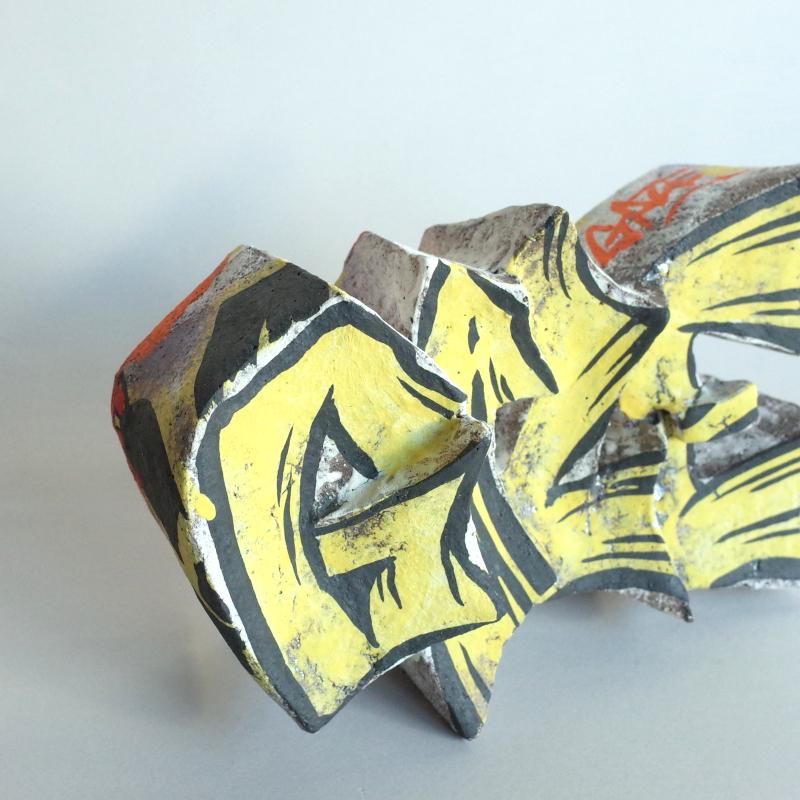 グラフィティやダンスなどのストリートカルチャーから受けた影響やインスピレーションを、太古の昔から存在する陶という素材で表現した彼を代表する作品「GAZE」。伝統的である陶の技法から解き放たれた彼独自のカルチャーを生み出しています。既成概念に捉われない想いの詰まった作品です。