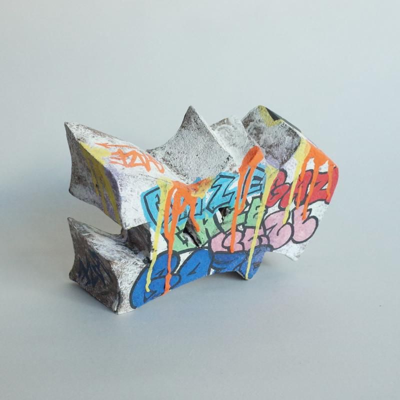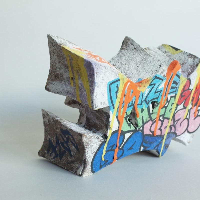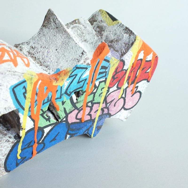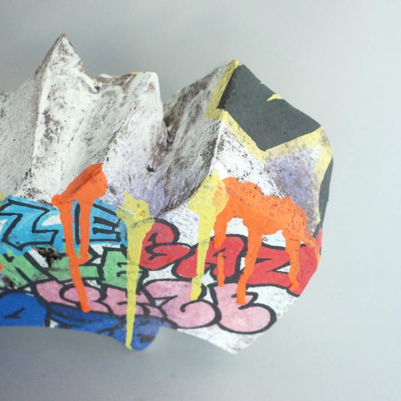 砥部焼の産地である愛媛県出身。幼少期より身近に陶芸を感じながらも、グラフィティやダンスなどのストリートカルチャーに関心を持つ。「陶」という不変性を持つ素材を用いて、ストリートカルチャー固有の身体的エネルギーや複層的なレイヤーを表現する。そして、複雑に変容する困難な時代の痕跡を作品として提示する。
