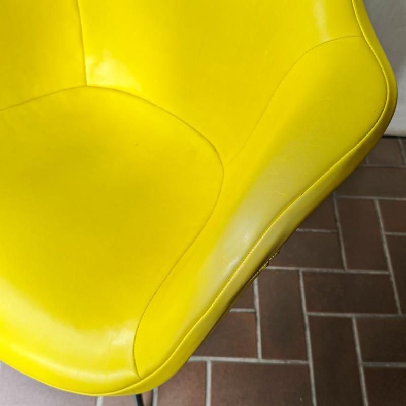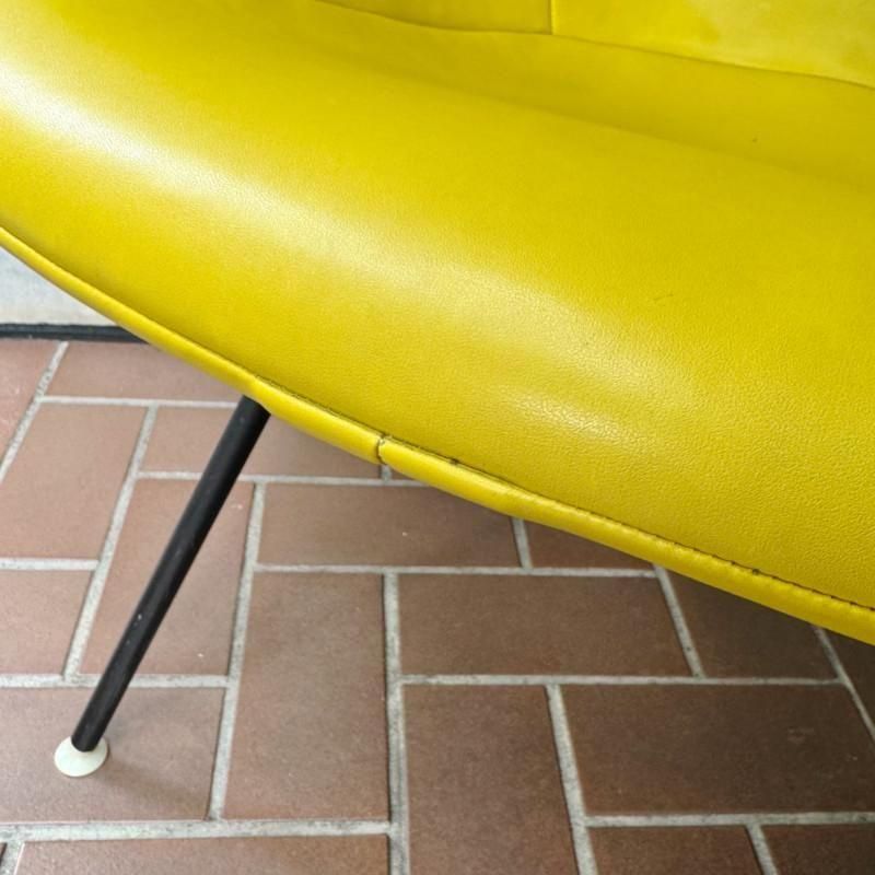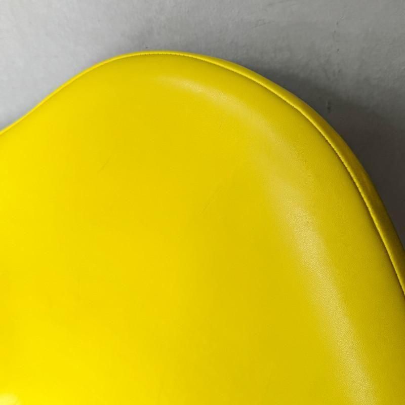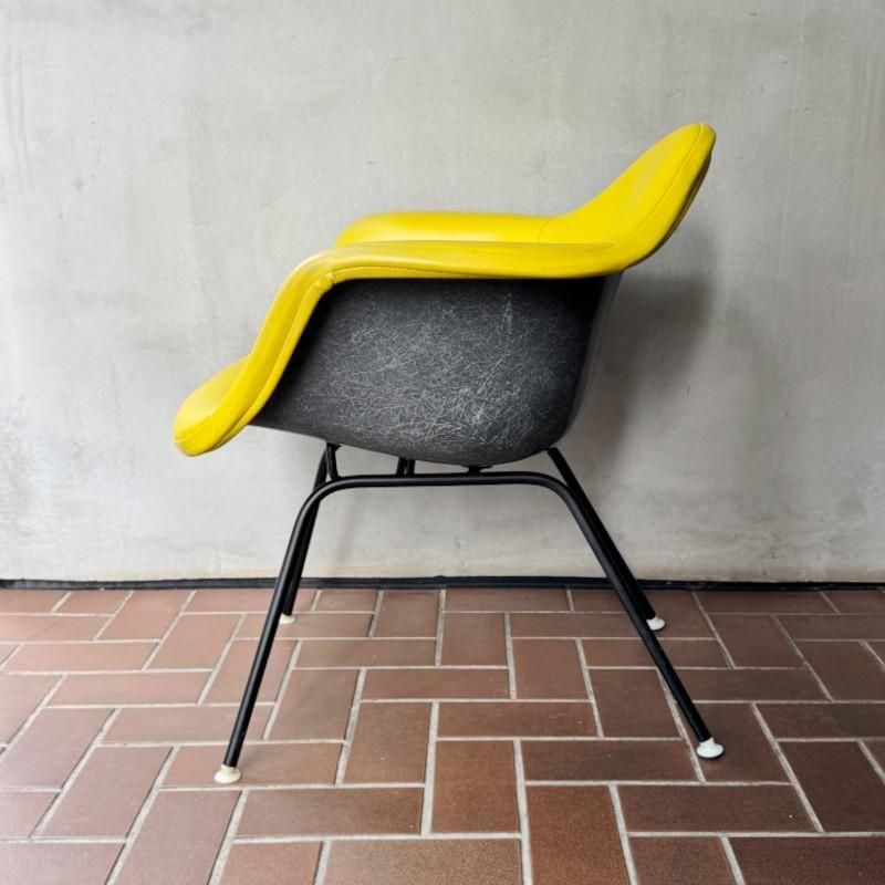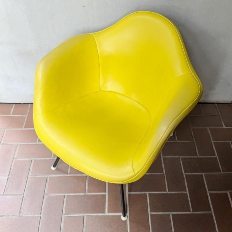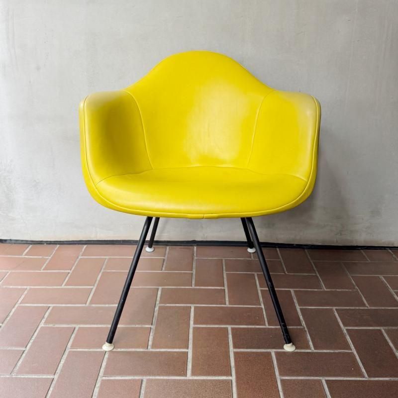 こちらは、アメリカ製ヴィンテージのアームシェルに、同じくヴィンテージのラウンジタイプのHベースを組み合わせたモデル。張地には、深みあるYellow Dark(イエローダーク)のナウガハイドレザーを採用しています。