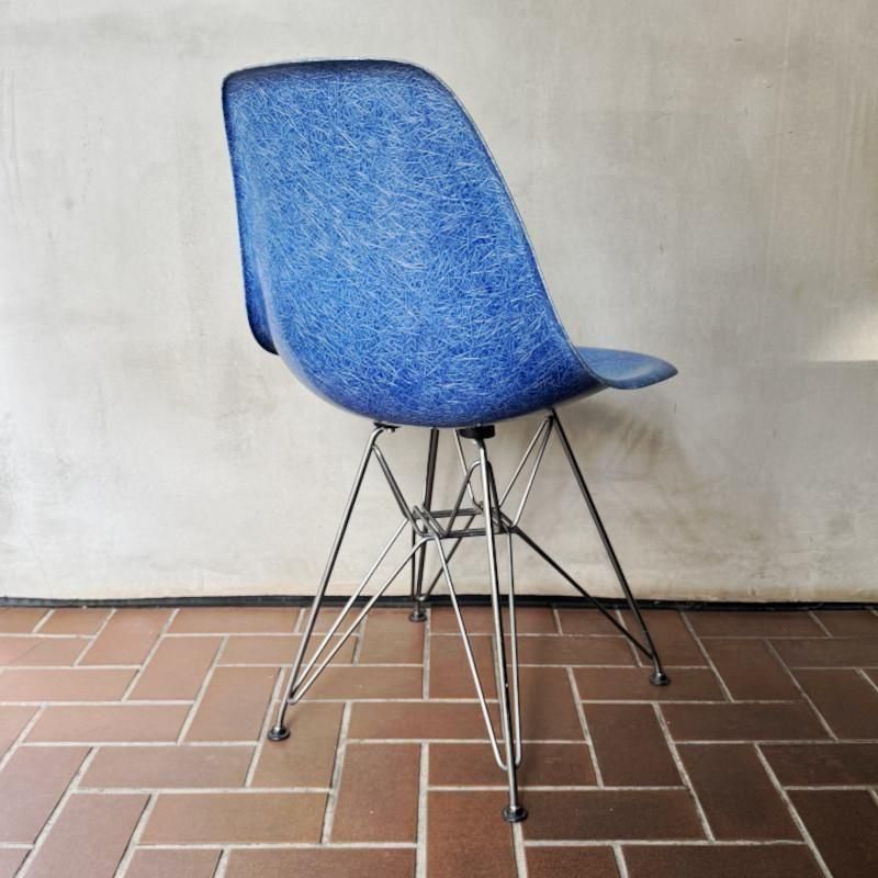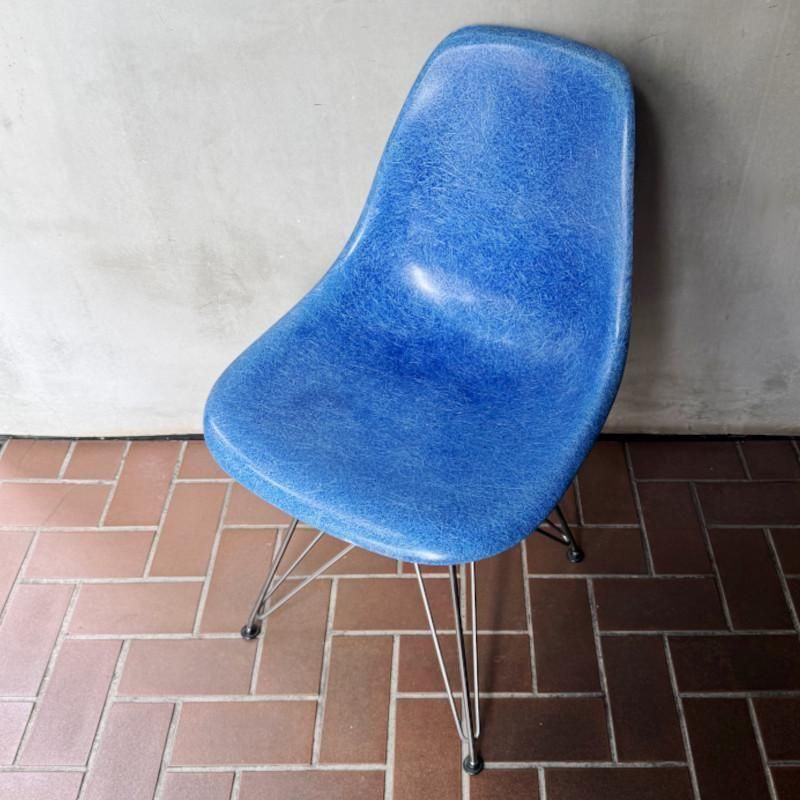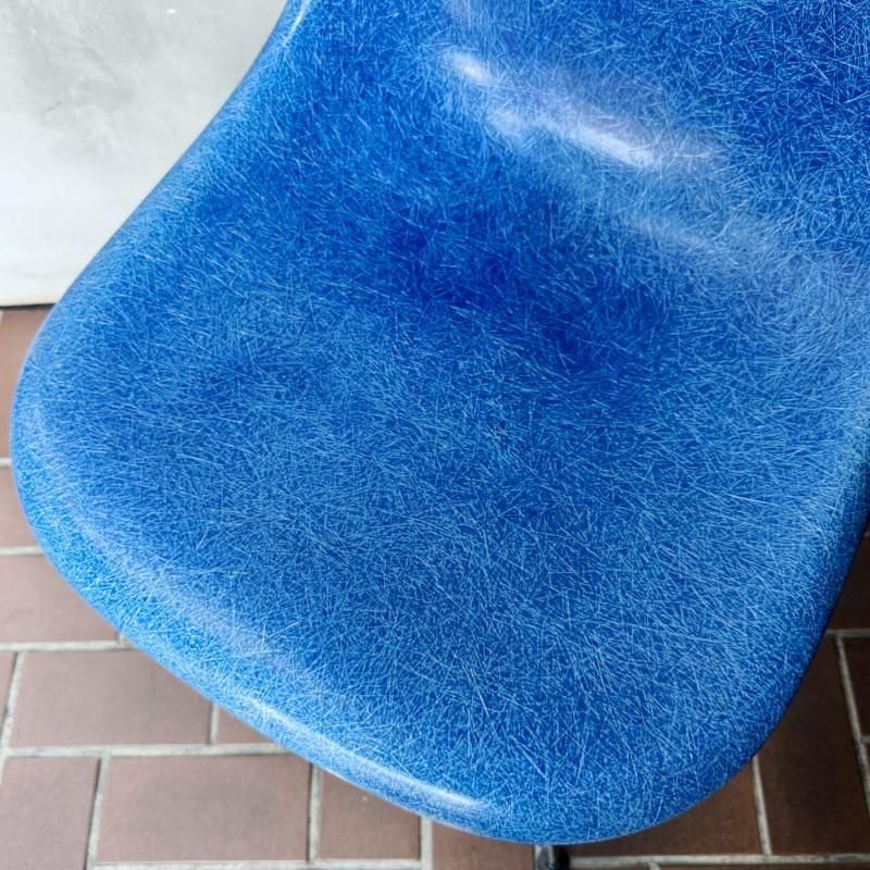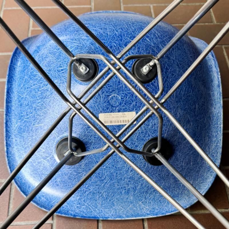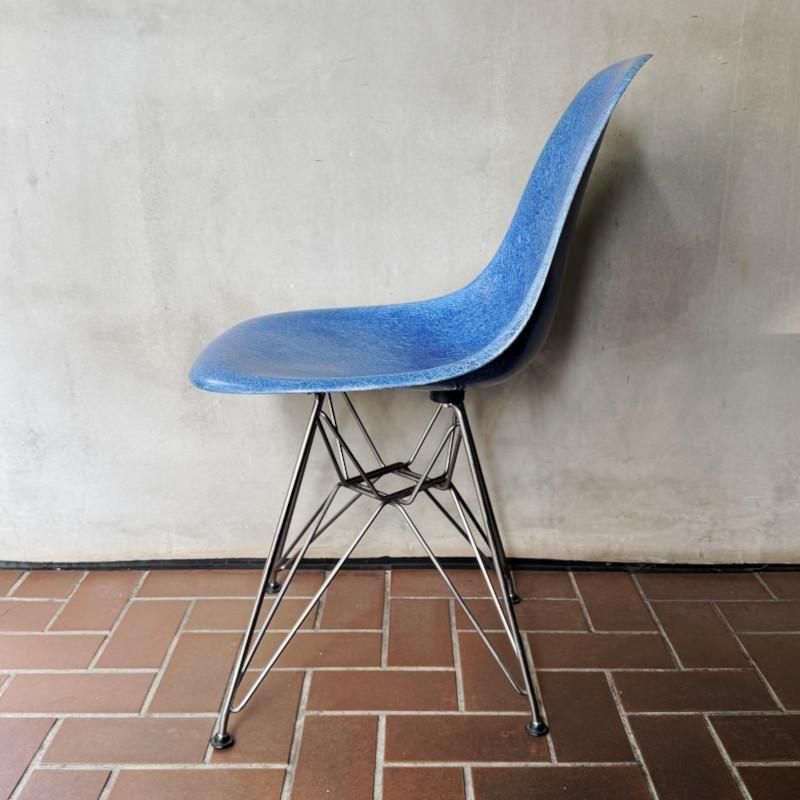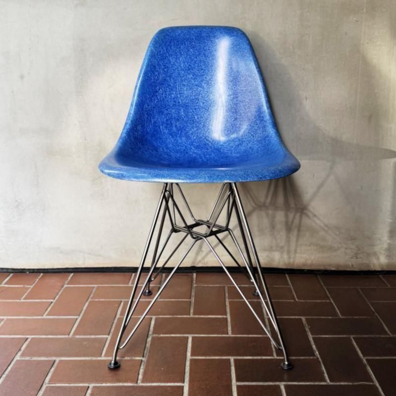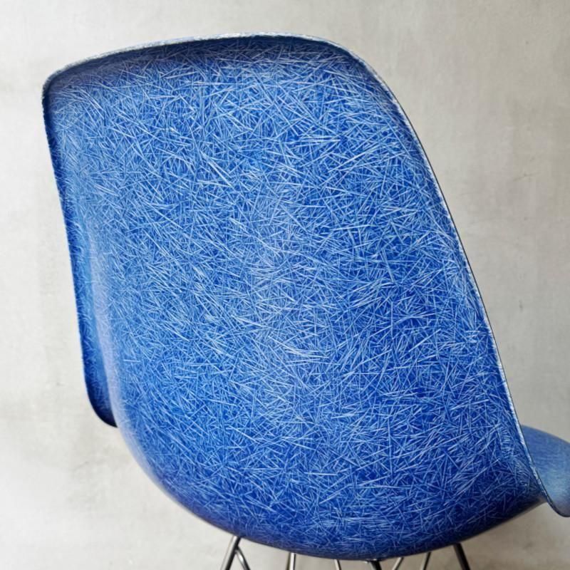 こちらは美しいサーフェイスを持つハーマンミラー純正グラスファイバーシェルとエッフェルベースを組み合わせた代表的なモデル「DSR」。DSRとは Dining Height / Side Chair / Rod Wire Base の略称で、その名の通りダイニングテーブルやワークデスクに最適なサイズ感を備えています。